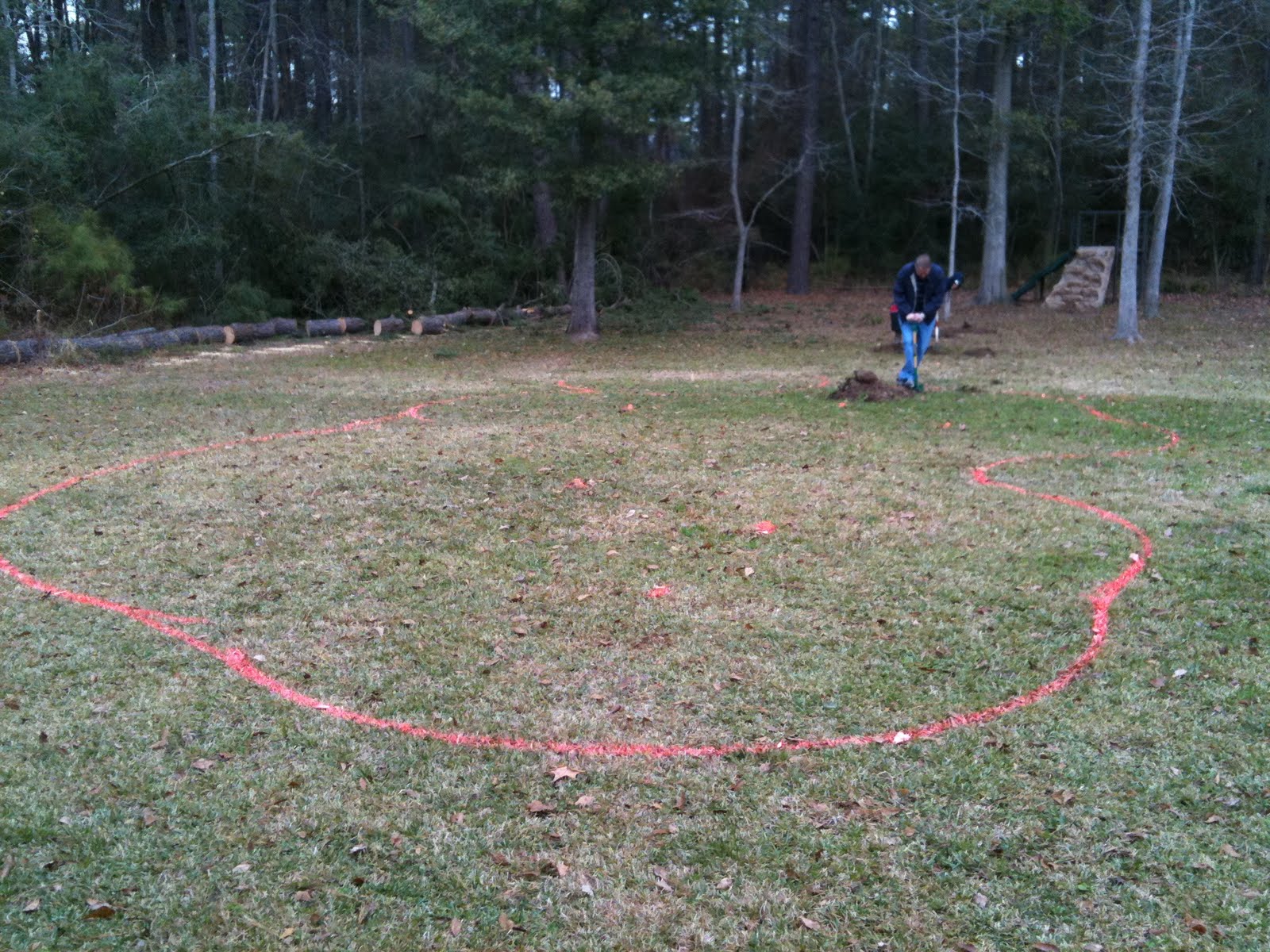 The boys have been preparing for a new pool by cutting down some of the baby pine trees in the lot next door. Grant took a lesson from Canada, and built himself a tipi! Not sure it would have protected from the rain or cold, but with no buffalo skin around it was the best he could do. Its gone now. Frank burned the pile.